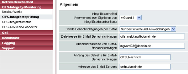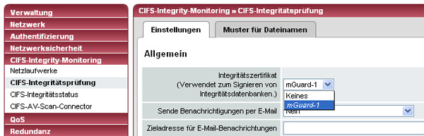 CIFS Integrity Checking - Einstellungen