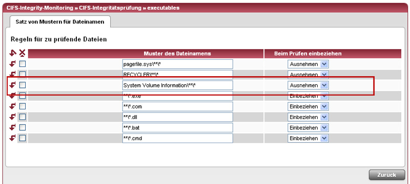 Also - noch einmal die Dateimuster konfigurieren und das “System Volume Information” ausschliessen... Bitte die Groß- und Kleinschreibung beachten!!