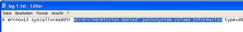 Auf das Verzeichnis “System Volume Information” kann nicht zugegriffen werden. Ein Check am NetBook ergibt - es handelt sich um ein verborgenes Systemverzeichnis, dass bei der Konfiguration der Dateimuster übersehen wurde.