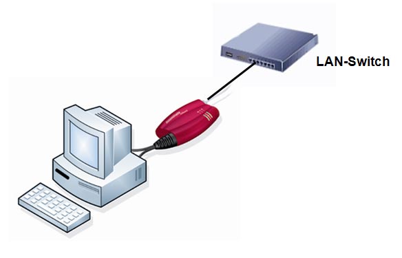 Der mGuard wird zwischen dem Computer und dem Netzwerk “eingeschleift”. D.h. Spannungsversorgung (beim mGuard smart2) erfolgt via USB, das vorhandene Netzwerkkabel wird in die Buchse des mGuard gesteckt und das Netzwerkkabel des mGuard in die Netzwerkschnittstelle des Computers - FERTIG.