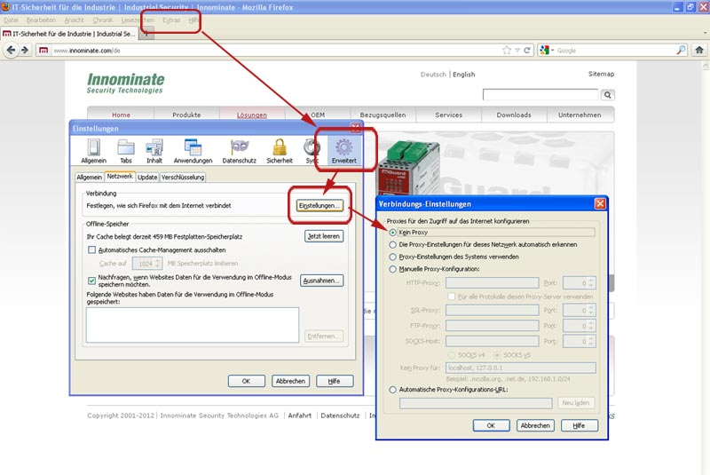 So schalten Sie den Proxy für den Browser (hier Firefox) aus